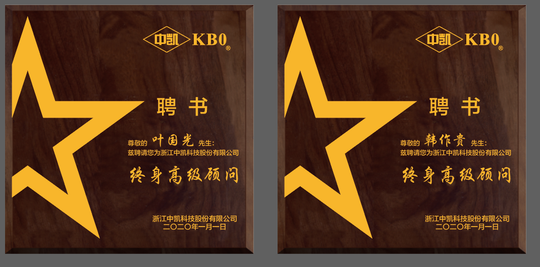 2020521日,中凱科技分別向葉國光和韓作貴頒發聘書,聘請兩人為浙江中凱科技股份有限公司終身高級顧問。