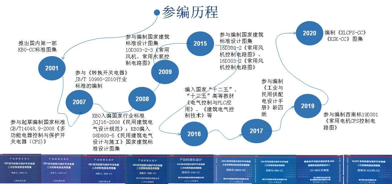 中凱是《控制與保護開關電器》GB/T 14048.9-2008國家標準的主要起草單位,參與了《轉換開關電器》JB/T 10980-2010行業標準的編制。中凱還參與了國家建筑標準設計圖集16D303-2《常用風機控制電路圖》、16D303-3《常用水泵控制電路圖》標準的編制、《工業與民用供配電設計手冊》新四版的編制,2008年中凱KB0控制與保護開關電器入編中華人民共和國行業標準JGJ16-2008《民用建筑電氣設計規范》,上述國家標準、圖集和規范的出版發行,很好地為設計研究單位選型應用KB0產品提供了方便,為客戶使用產品提供了解決方案,是為客戶提供的增值服務,使中凱KB0產品的應用上了新高度。