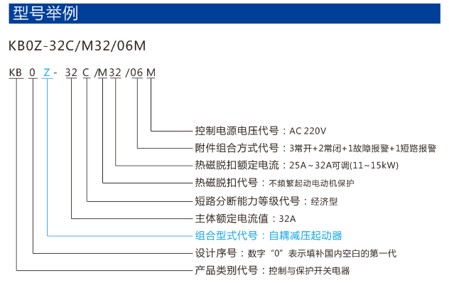 KB0作為主開關,與接觸器、時間電流轉換裝置、電氣聯鎖等附件組合,構成自耦減壓起動器成套單元KB0Z(以KB0-F消防型產品作為主開關,可構成消防型自耦減壓起動器成套單元KB0Z-F)可實現110kW及以下的電動機的自耦減壓起動控制與保護。
