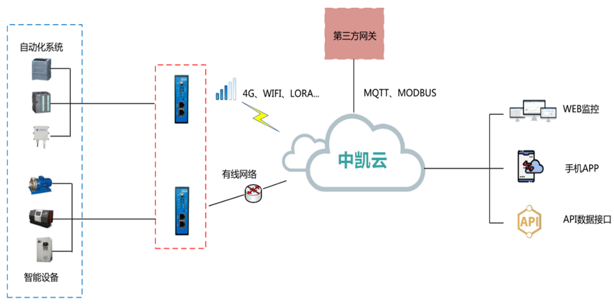 中凱云平臺是開放式的、以企業為核心的物聯網平臺。以設備數據采集、企業信息集成為突破口,實現設備管理、運維,在線診斷等多維度、多元數據的融合應用,提供數據建模、大數據分析DIY、智能app組態開發和分析服務,以集成化、數字化、智能化賦能于工業領域的智慧大腦。