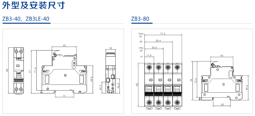 ZB3小型斷路器具有觸頭位置指示窗口,帶觸指防護組合型接線端子及紅綠安全指示,安全性更高。限流型觸頭系統,磁吹型滅弧裝置,確保高分斷能力,避免產品與設備承受大的短路電流。殼體與功能鍵均采用高性能PA尼龍(高阻燃、耐高溫、耐沖擊)塑料制成。外形新穎、結構合理,具有多項專利保護。產品具有過載、短路保護功能。